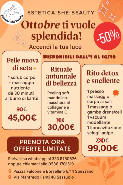Ottobre ti vuole splendida! Accendi la tua luce con le nostre super promo fino al...