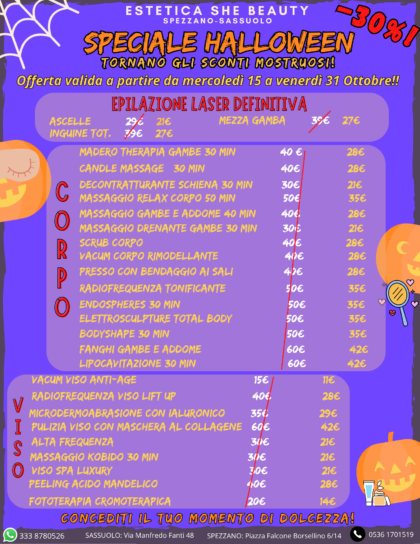 🕸️ SPECIALE HALLOWEEN DA SHE BEAUTY! 🕸️ Tornano gli SCONTI MOSTRUOSI 👻 Dal 15 al...